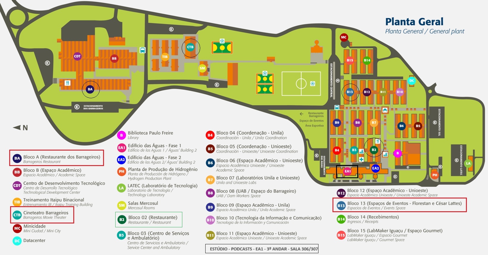 📍 For orientation, please refer to the campus map below highlighting all main LAGIRS 2025 locations within Itaipu Parquetec.