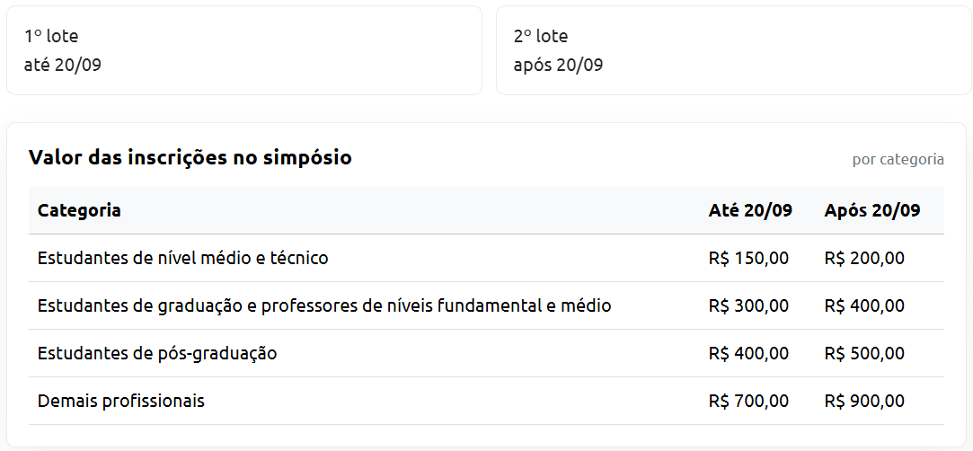 Confira as diferentes categorias de associados e os valores a serem pagos anualmente: